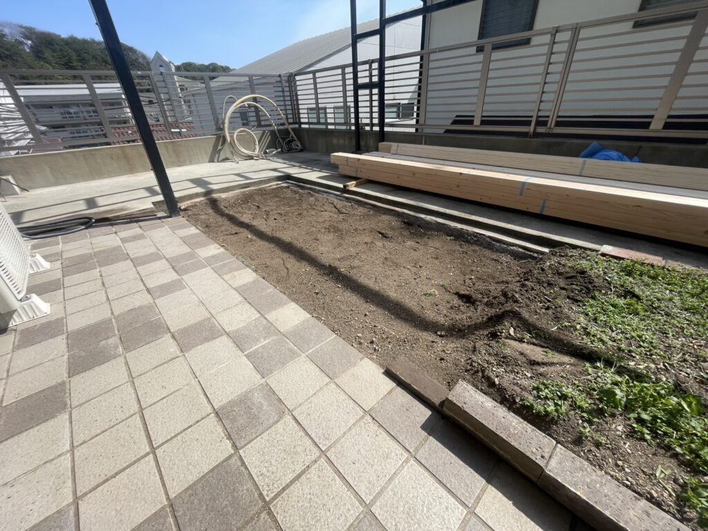 お庭の花壇も半分だけ撤去ー