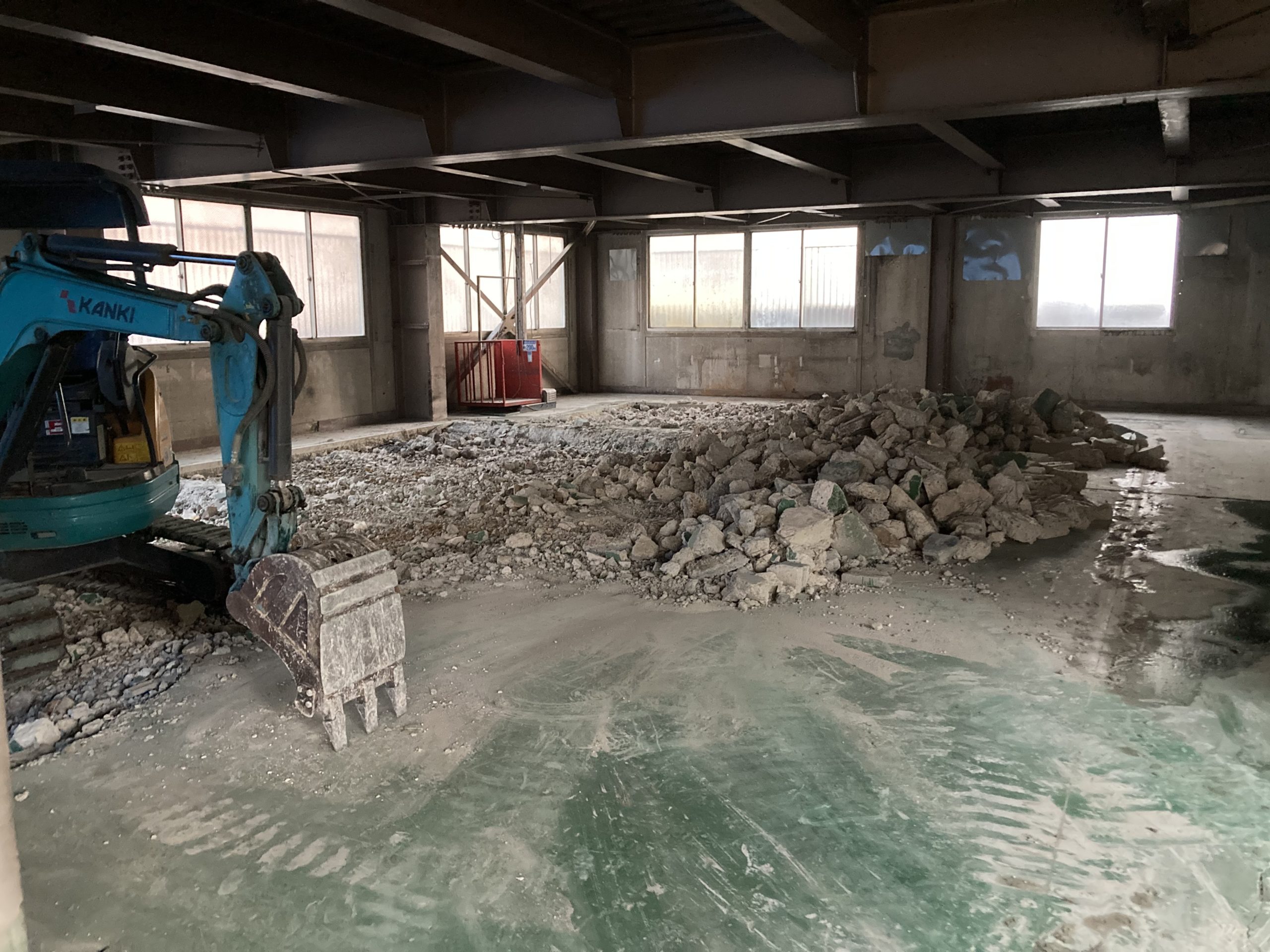 大阪市鶴見区工場内解体工事 2022年12月5日 最終更新日時 : 2025年7月10日 topgear20210401@gmail.com 着工日:2022年12月 大阪市 鶴見区 工場 解体工事 内装解体あり 大阪市の鶴見区の工場内での解体作業となりました。 2階部分は間仕切り撤去や床メクリ、水回り解体及び止水がありました。 外部はテント撤去や階段の解体となりました。 メインの解体工事は1階部分の土間のはつり作業です。 ユンボを使い、廃材もかなりの台数をはしりました。 事故もなく無事終わり、一安心です。 内装解体からお庭の庭石、生木撤去等、お気軽にお問い合わせください。