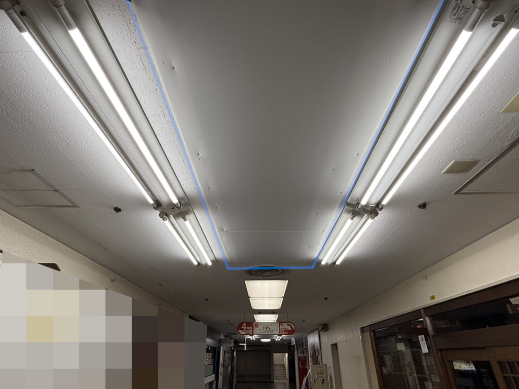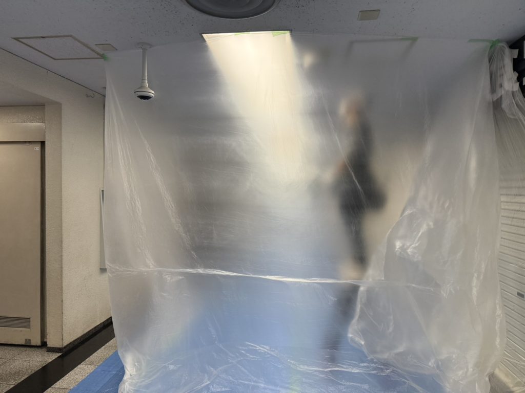 煙や粉塵が他の店舗に影響しないよう、カーテン養生