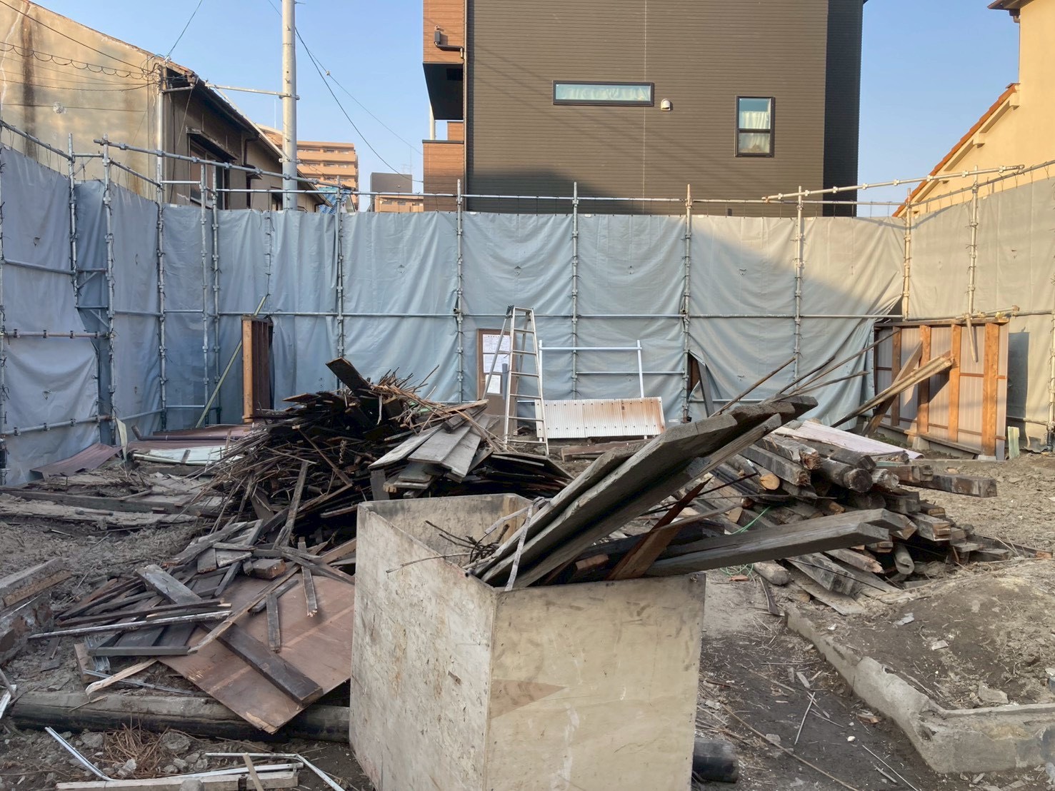 解体現場では建物の破片なども多く、風で飛ばされると近隣に被害が出る可能性があります。